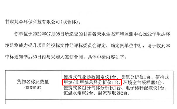 我司中標(biāo)PF-300便攜式甲烷、總烴和非甲烷總烴分析儀1臺(tái)